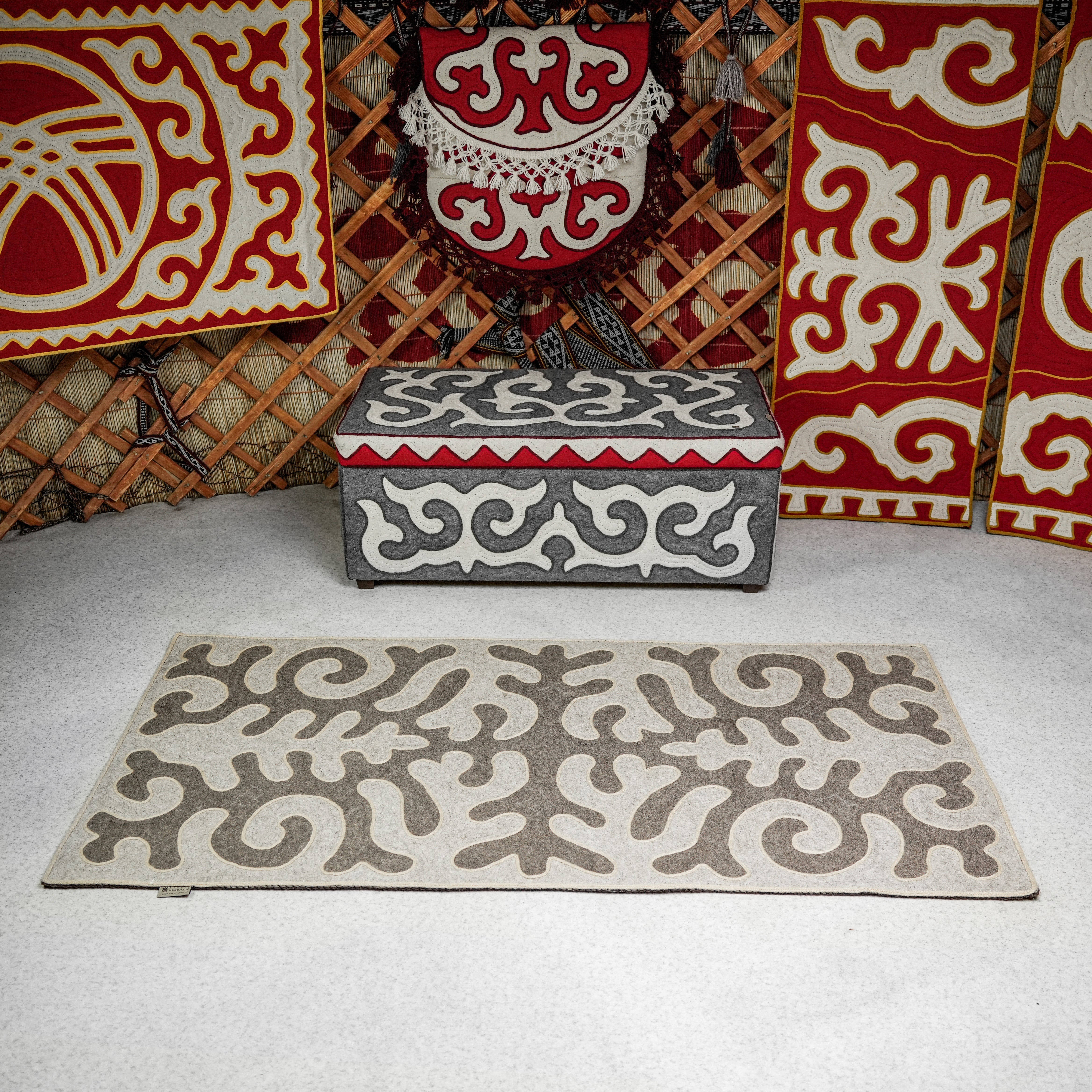 Бугу: ковёр шырдак ручной работы из войлока (бежевый и серый)