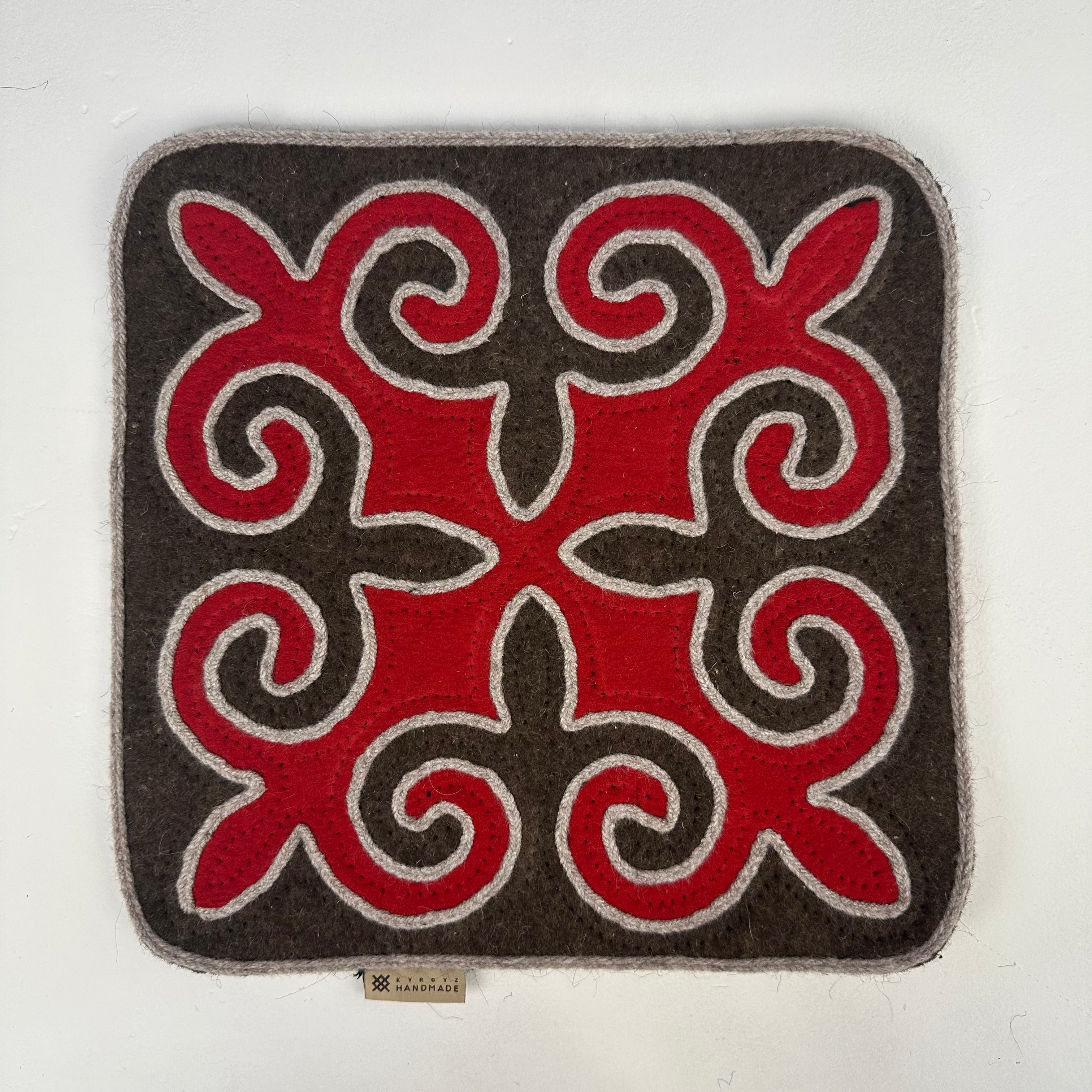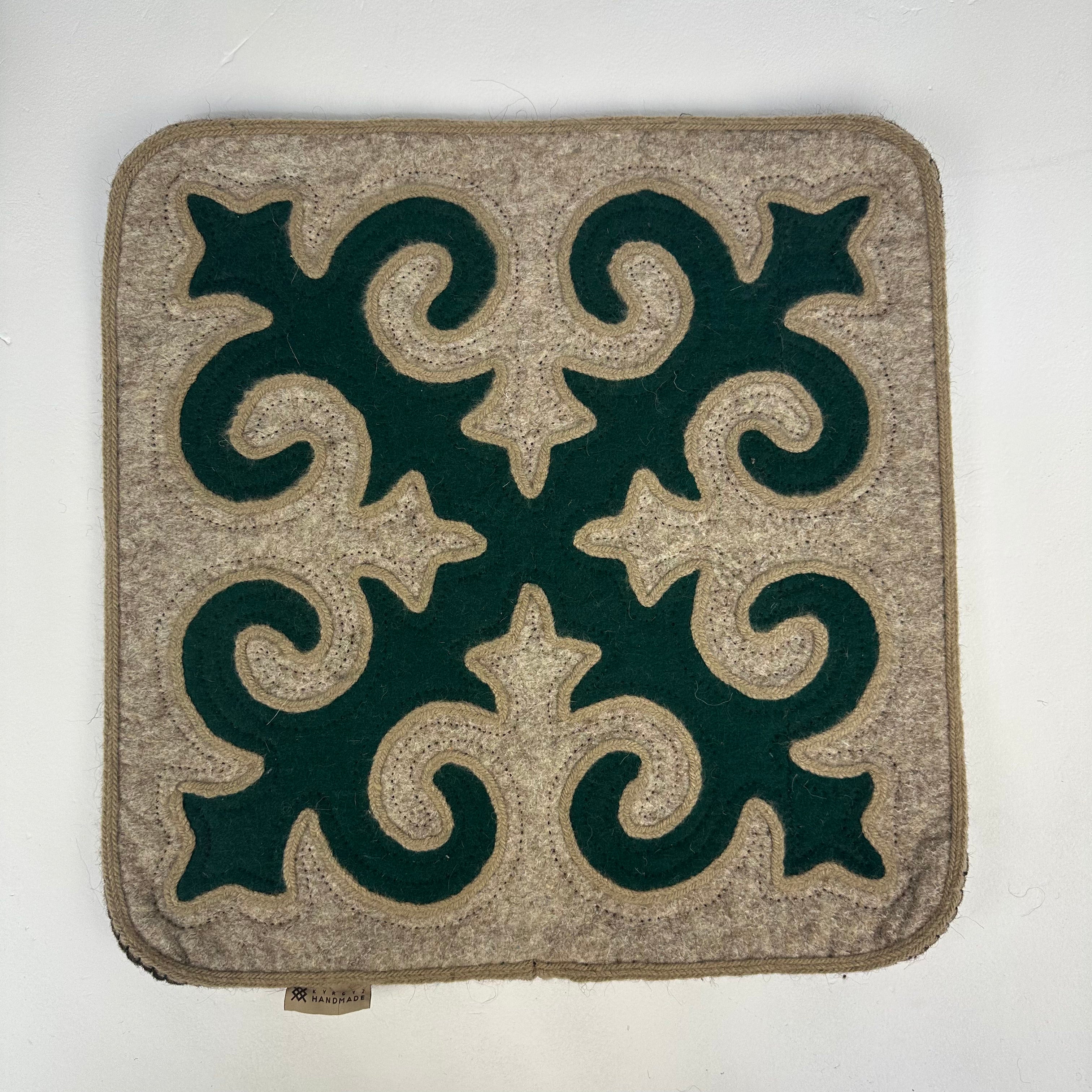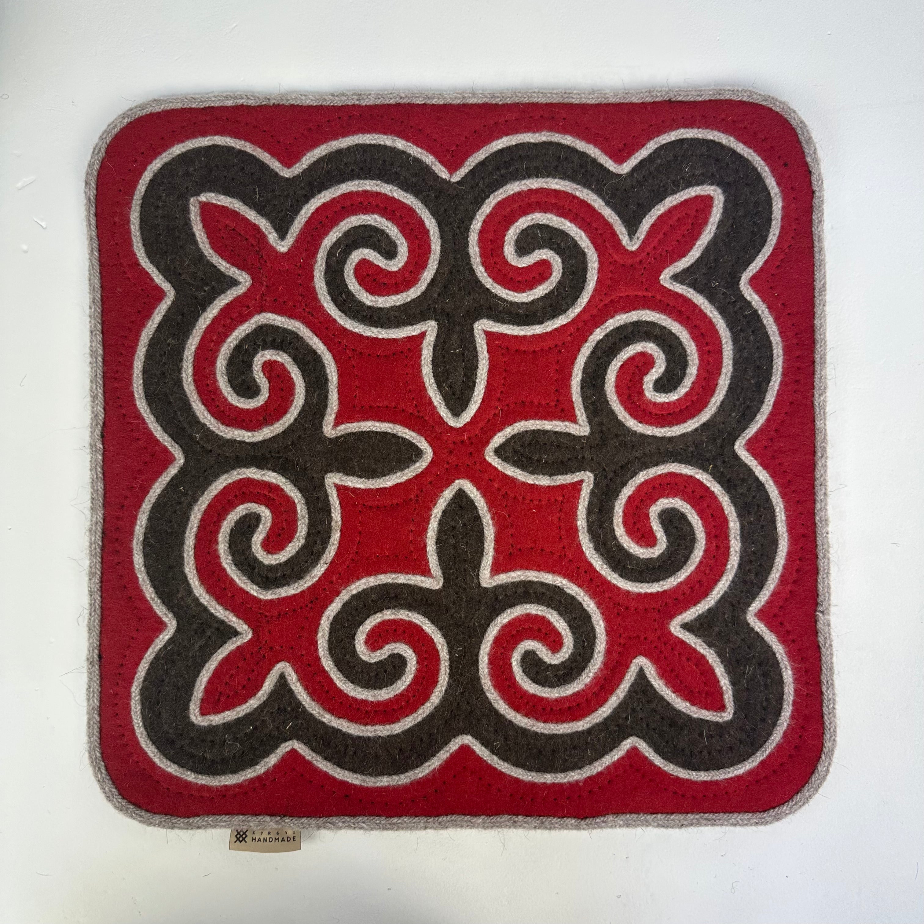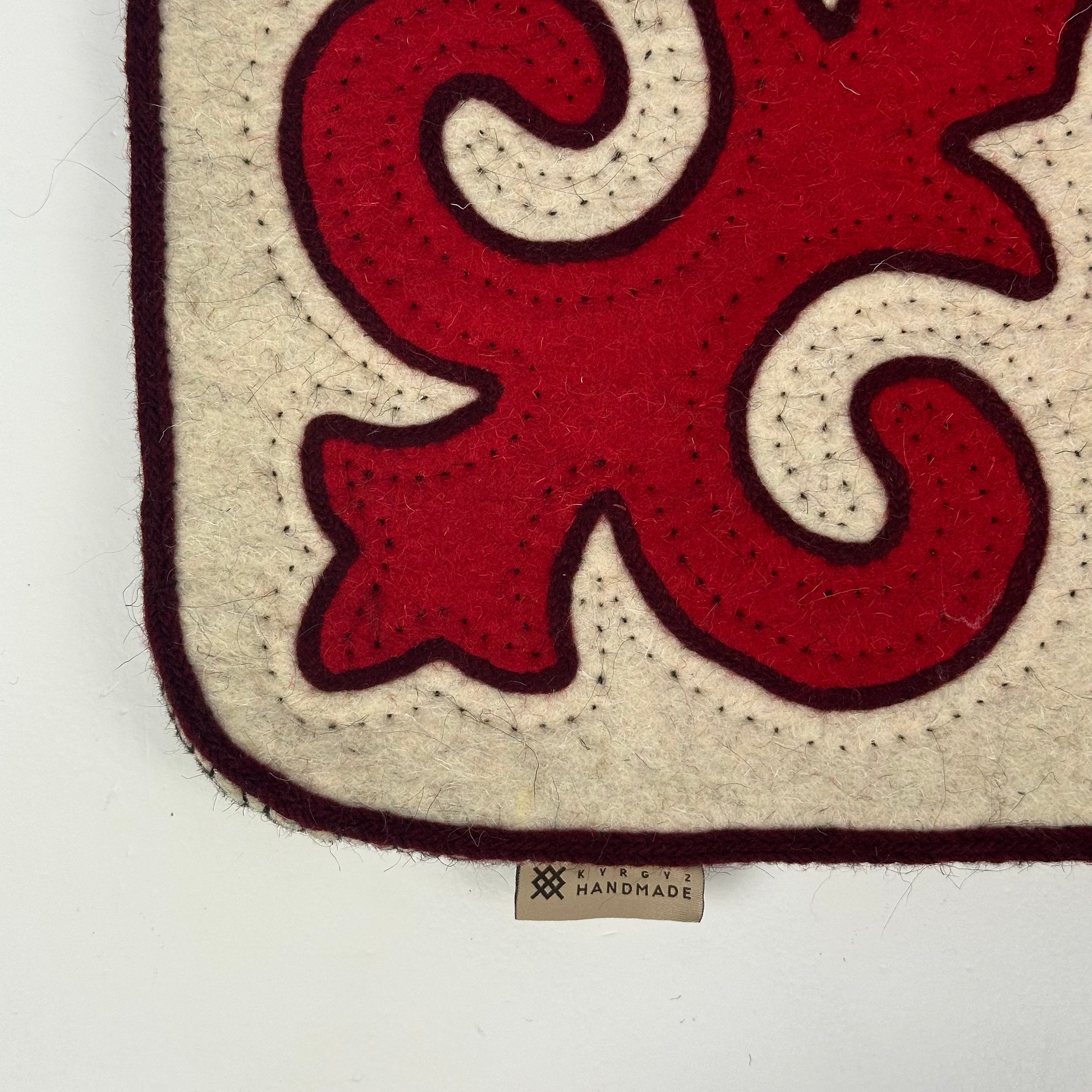 Каждый ковёр, изготовленный вручную из 100% натуральной овечьей шерсти, производится традиционным методом валяния, а не машинным способом. Это позволяет создать поистине уникальное изделие ручной работы. Благодаря значительной толщине и плотной войлочной структуре эти ковры долговечны, обеспечивают естественную теплоизоляцию и дарят ощущение мягкости и комфорта. Поверхность войлочной шерсти имеет характерную, богатую текстуру, которая одновременно приятна на ощупь и эффектна на вид.
