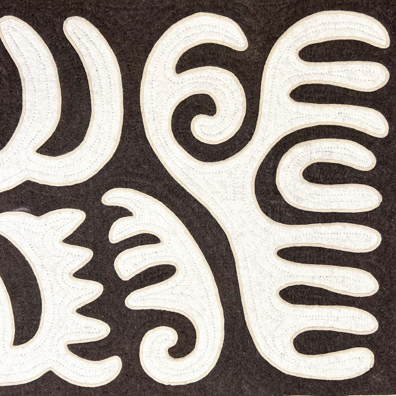 Каждый мотив создан вручную в контрастных цветах, создавая смелую и гармоничную композицию, наполненную культурным смыслом и красотой.
