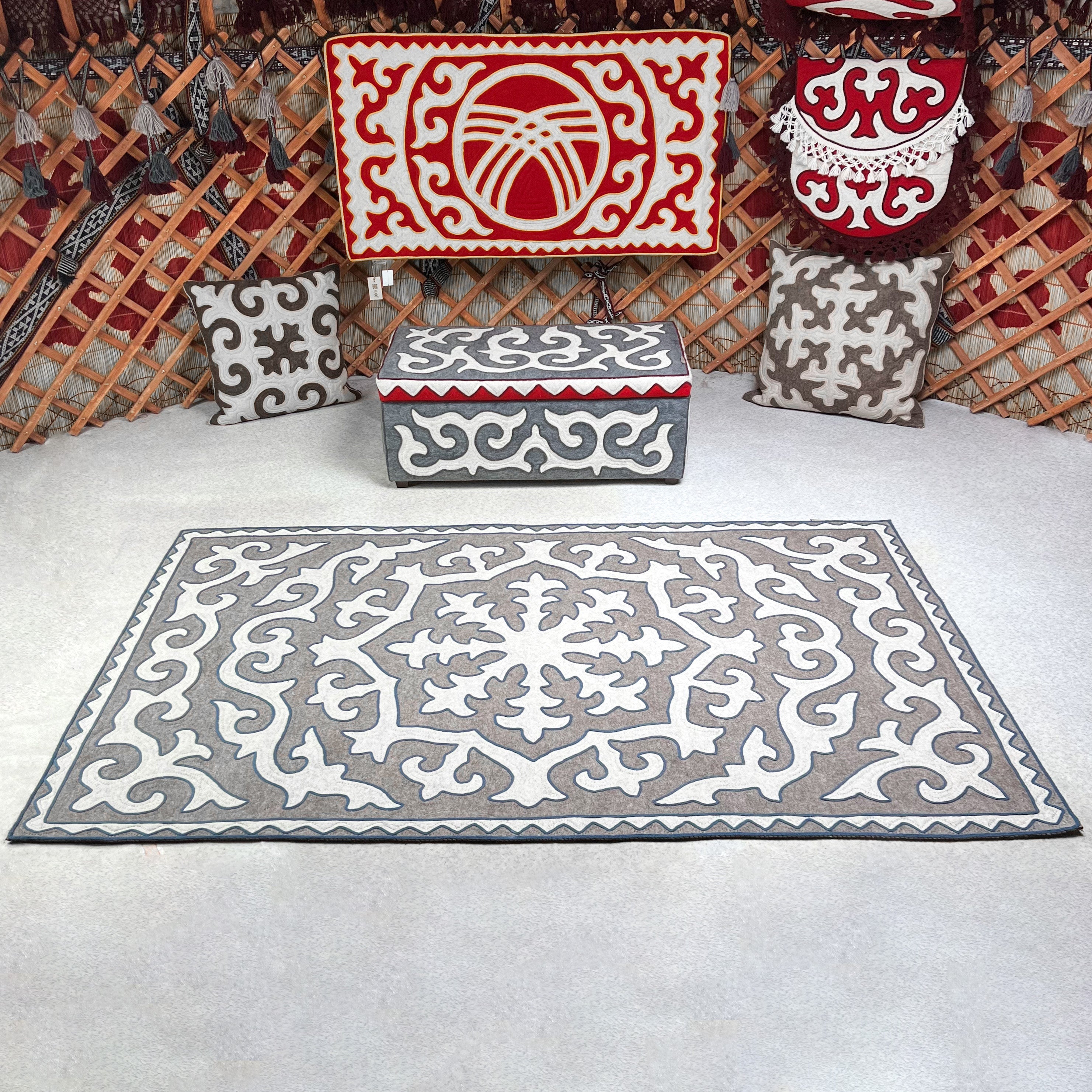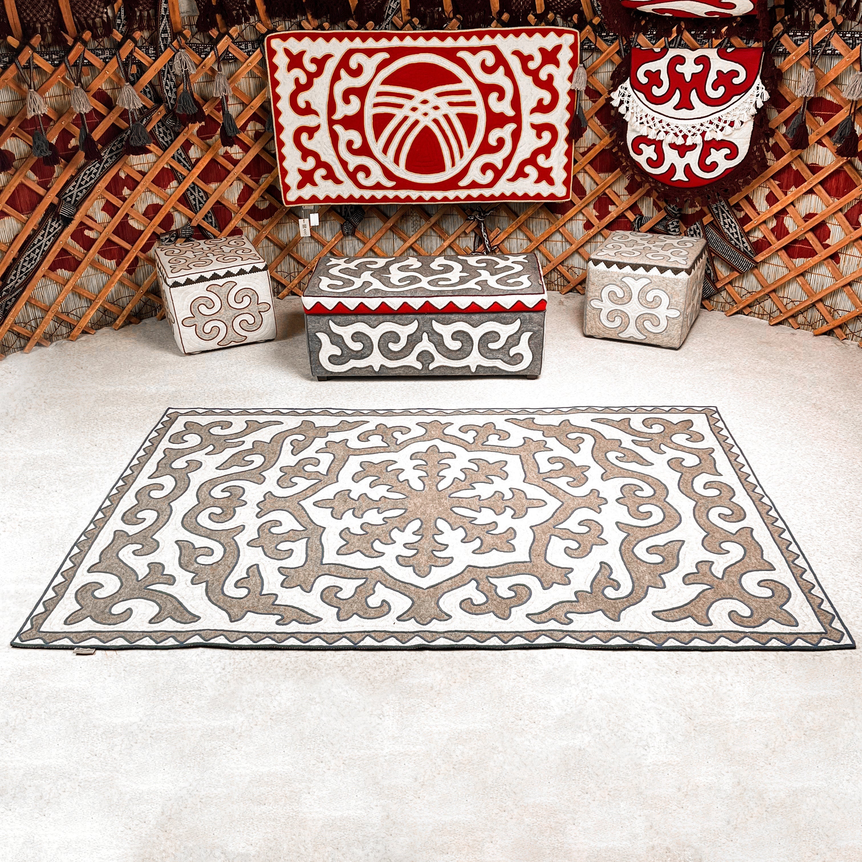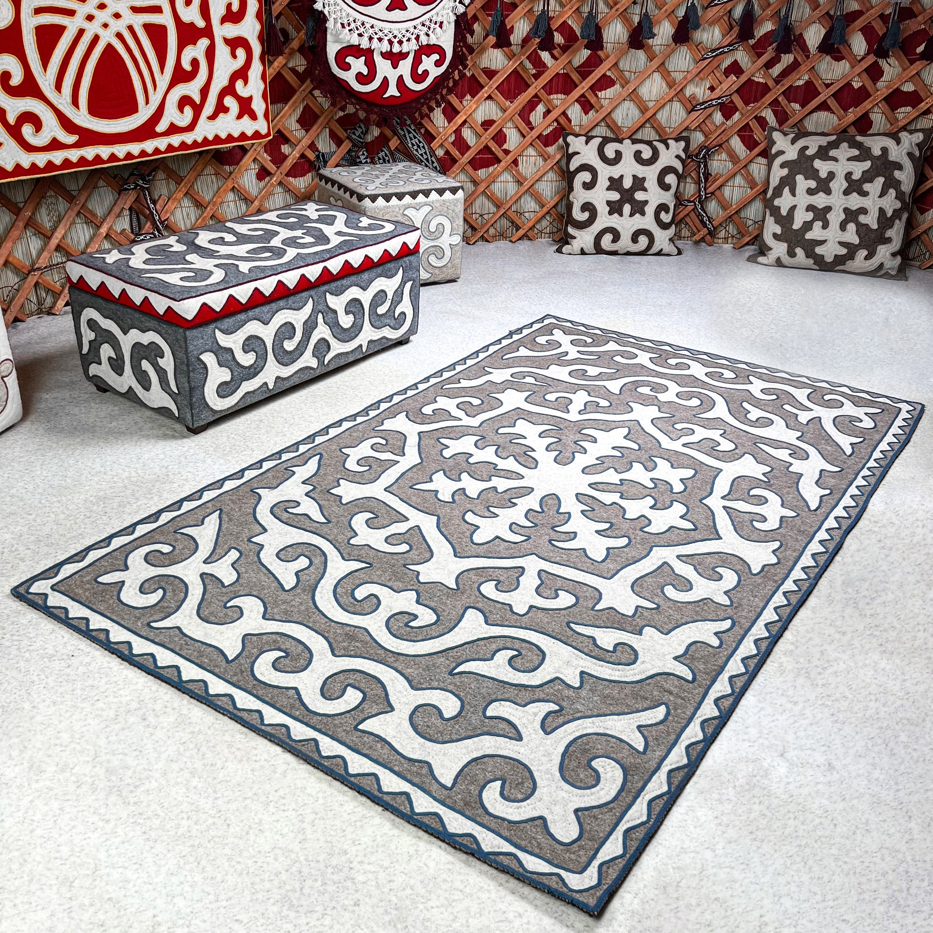 Саруу: ковёр шырдак ручной работы из войлока (серый и бежевый)