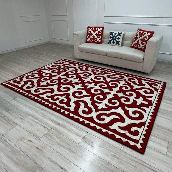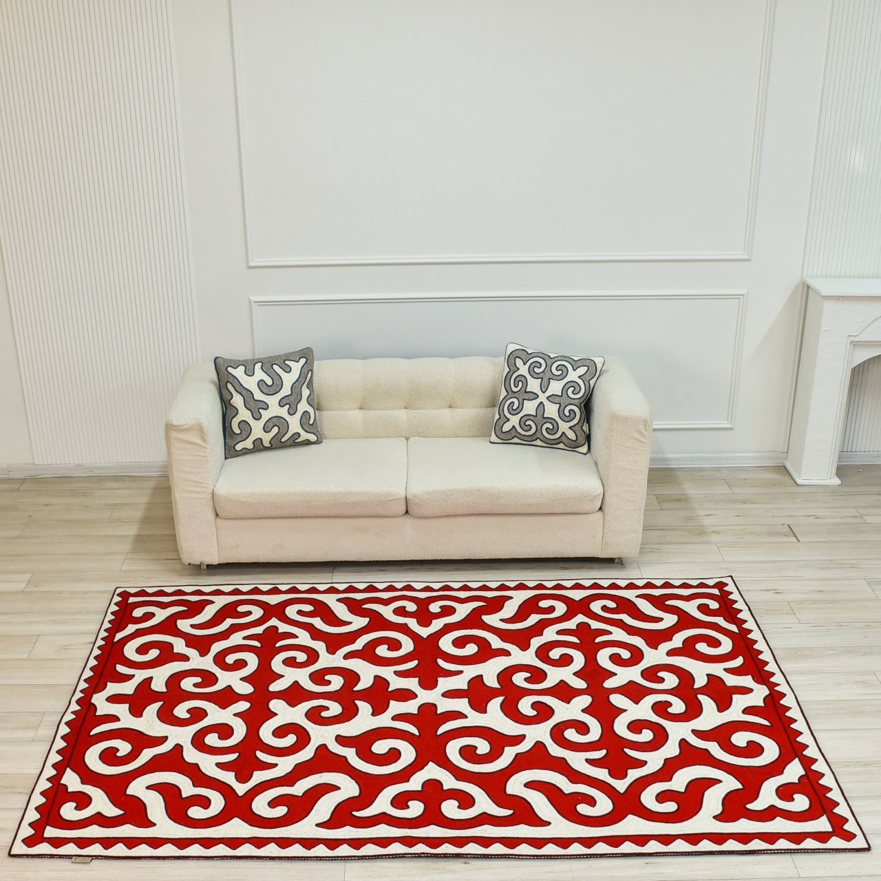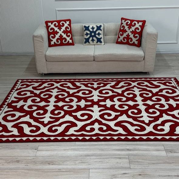 Керемет – ковер ручной работы из органической шерсти шырдак (красный и белый)