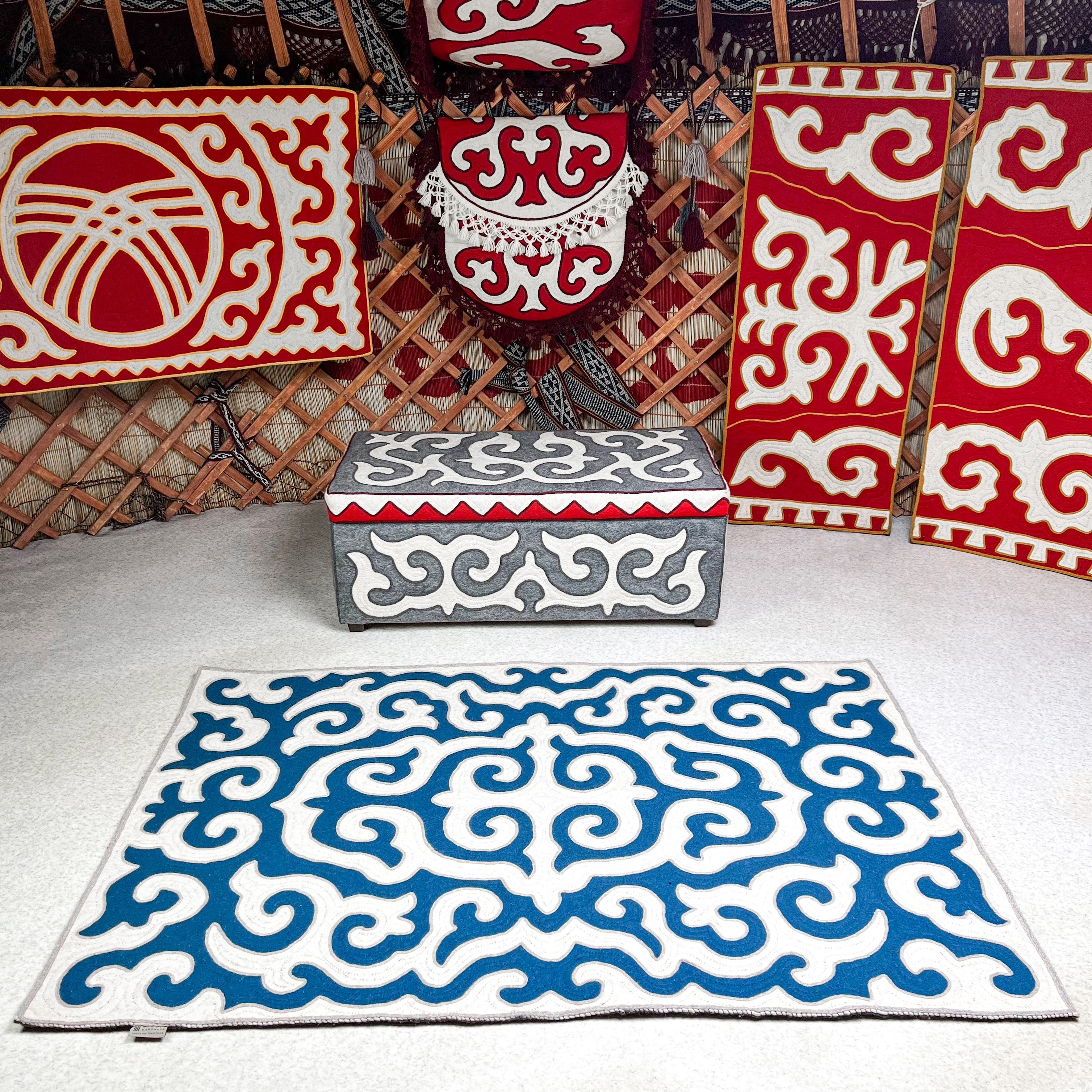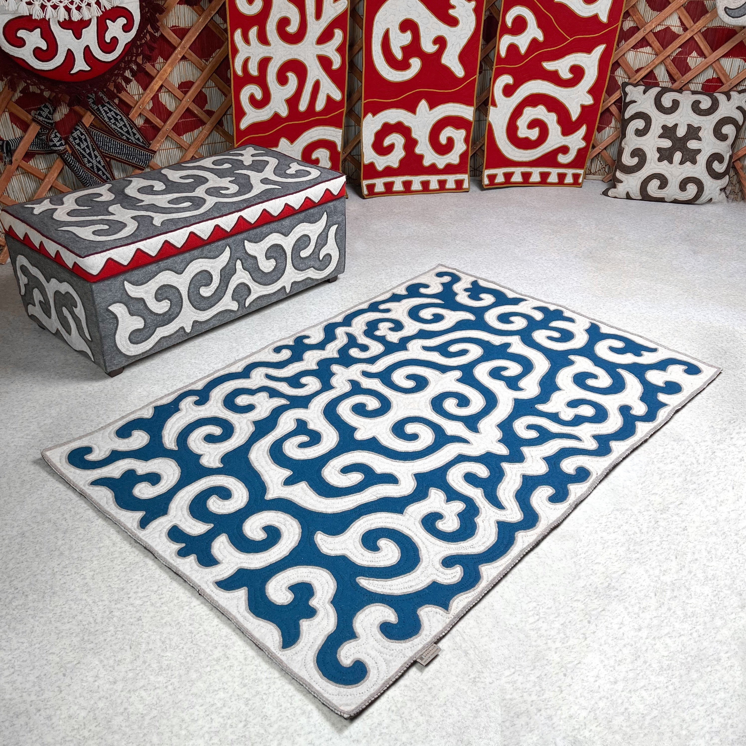 Толкун: ковёр шырдак ручной работы из войлока (бирюзовый и белый)
